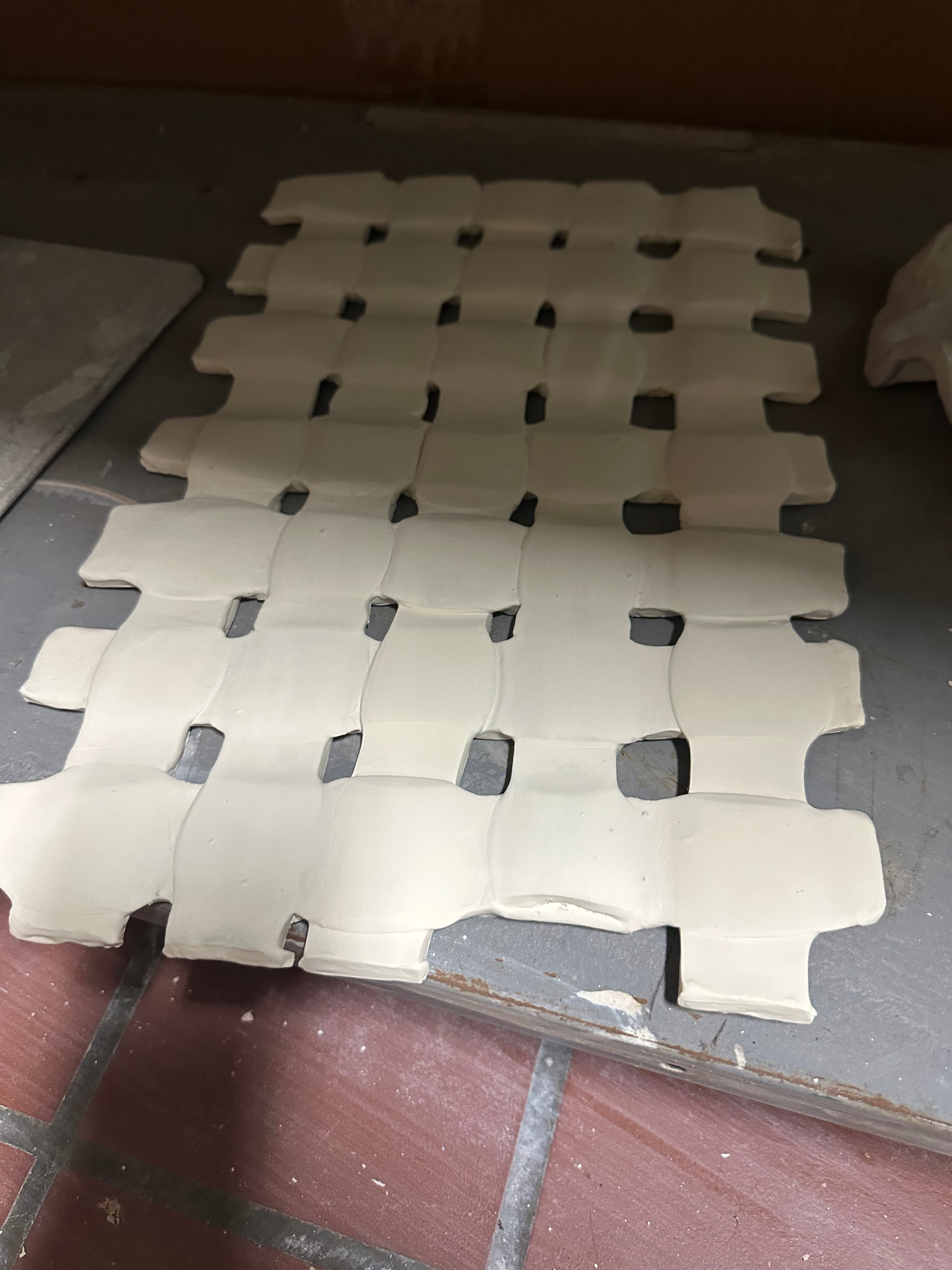 If these large flat pieces are stilted, they will likely warp in the glaze fire.