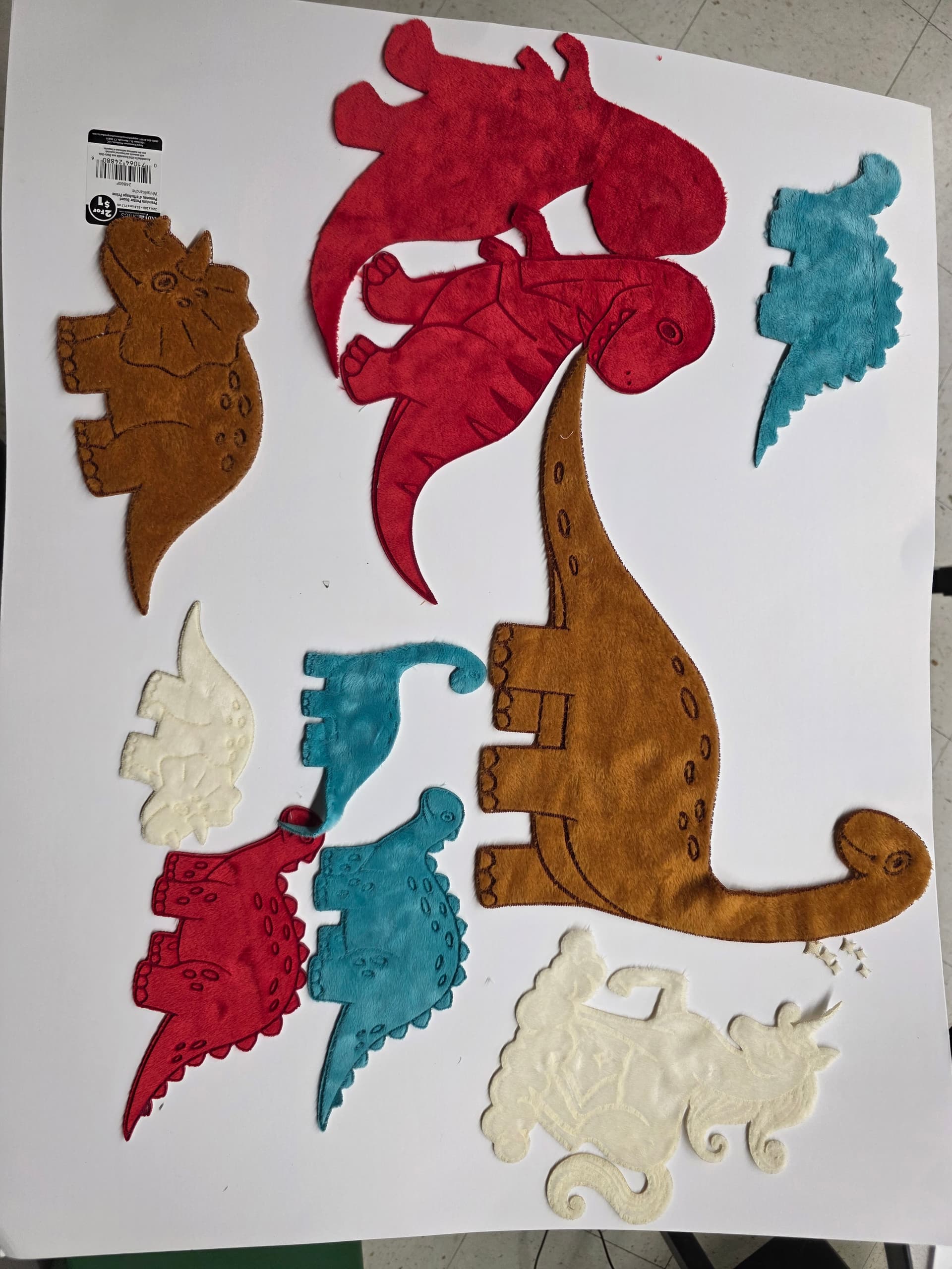 I’m making appliqué dinosaurs and unicorns for some upcoming quilts, and started by cutting out the outlines. Originally, I planned to hand-sew the details… but then I had a wild idea: what if I laser-burned the details directly into Minky fabric?