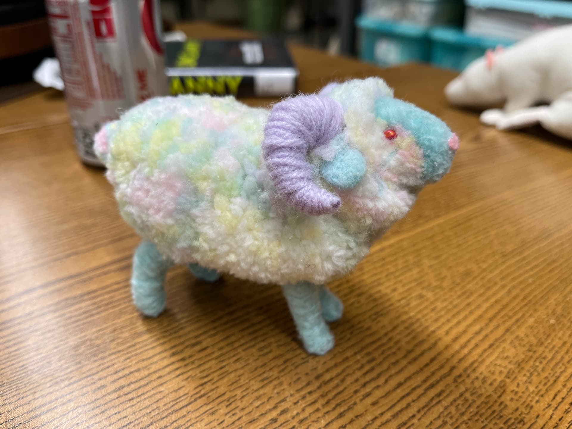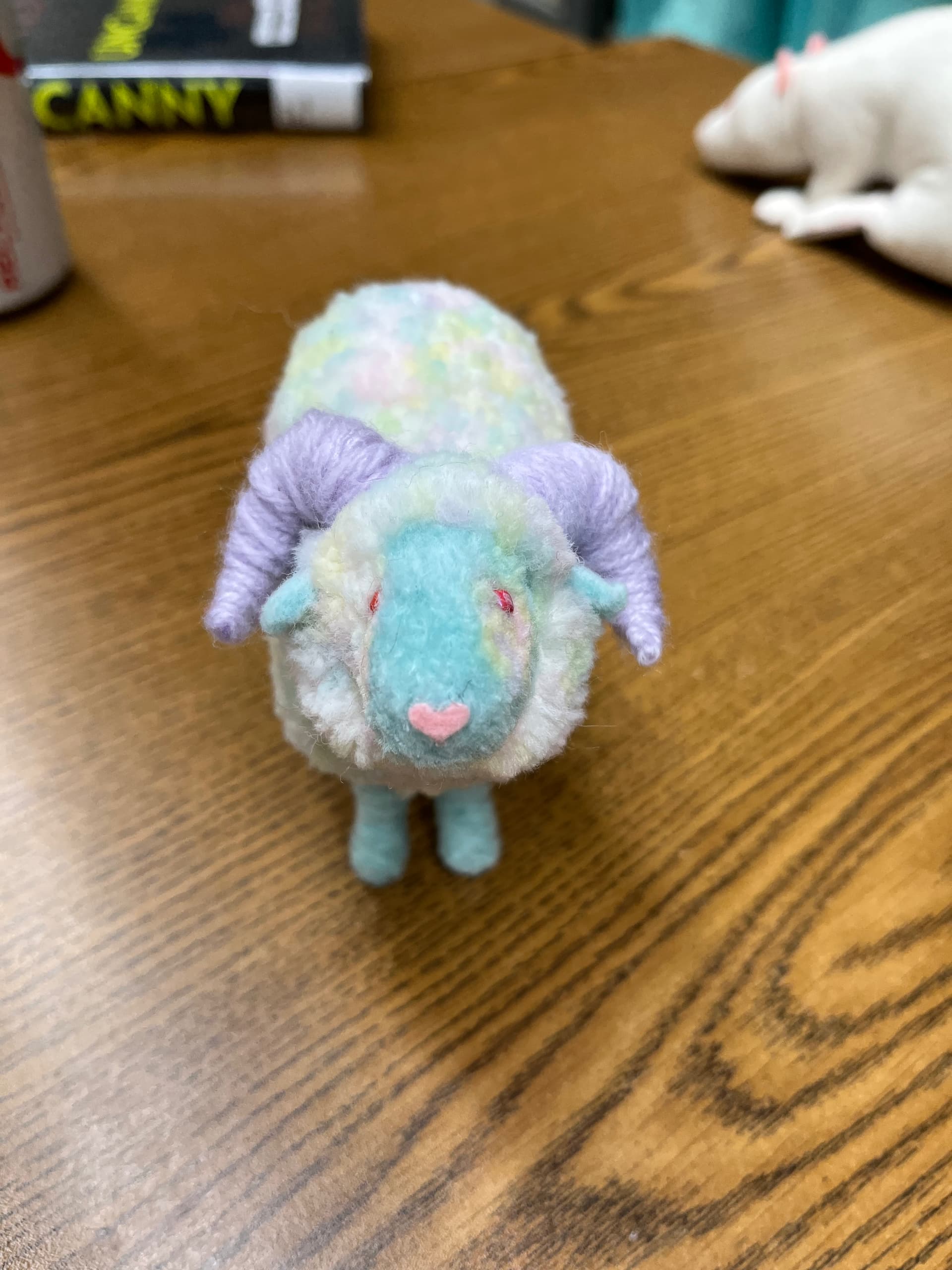 Needle felting the legs and ears took forever so I’ll probably use different methods for future pom pom projects.