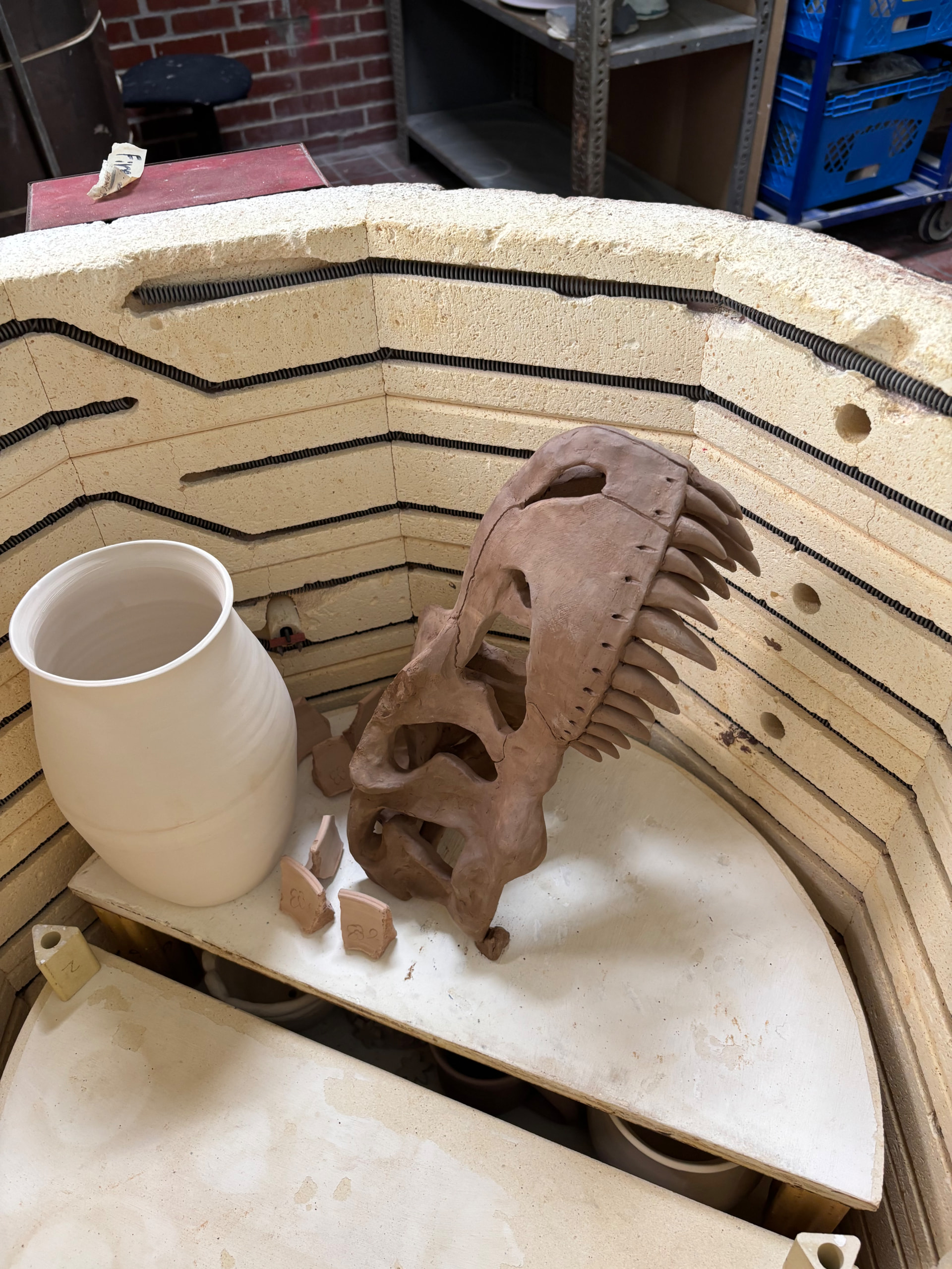 This bisque load is scary, not only is it a dragon skull it is huge!, I am really working to make sure it survives!!!