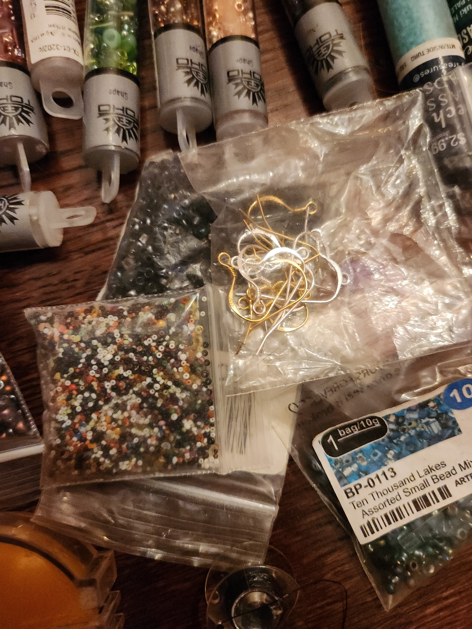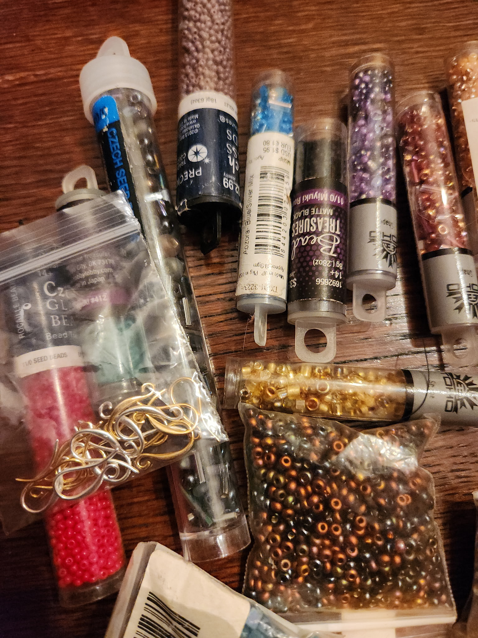 I have beads…. SOOO many beads and they have just been sitting here. Unused…. (Side note to this, I honestly am not sure if I like making art or just acquiring junk to maybe one day make art with? Am I alone in this? Please tell me there are others with this problem! ) Anyhoo, these are mostly Miyuki and Toho japanese seed beads. All the beads in the clear vials are the smallest size made, 15/0…. So like….. 120 vials of Japanese beads? I’ve also thrown in an assortment of other various beads, (even some micro antique beads that are super small and super cute and THEY DON’T MAKE THOSE BABIES ANYMORE !Well, yanno… people were going blind… at least that is why I heard they stopped? Or fashion changed… I hate change. I also disagree with their stance…. Hundreds weren’t going blind yearly… it wasn’t super extreme… I mean we have autonomy .. I’ll make myself blind if I want to) I’ve also added some earring hooks, thread, needles, all the accoutrements your little heart could wish for in a newly realized beading journey. The beads also come in a super cool purple bead briefcase type deal which I lovingly organized by color….(all 120 vials of Japanese perfection … Jesus that’s a lot of beads .. and to think I had to order them individually…. so much time ordering for NOTHING because there is not a store in this town that carries this stuff!) while I looked at all their opaque, transparent, gold -filled, or matt opulence, contemplating if I actually want to adhere to the promise I made to my family about downsizing my craft stock …yes, I realize I bought them many moons ago with the intent to one day be a proficient beader…. but alas, other artforms called, SO, I followed my heart/ADHD and I stashed the beads (pun, ha!) and went and bought a bunch MORE CRAP ART SUPPLIES for each of my new obsessions as they have made themselves known……and all that JUNK is on a shelf next to THE BEADS. Its been a couple years…. the beads insist they become something else besides dust collectors. They mock me. Please buy them. I probably spent almost a G on all of this … so I figure to punish and shame myself for not sticking with my hobby plan, letting these beautiful, unique, little things go to waste and not live up to their true crafting potential…poor beads…. up there all alone, (except for that other crap I bought in the hopes of creating more projects that have no finish line in sight….) oceans away from my hobby table when you consider thier smallness…. might as well be the barrens…. So because I’m a terrible artist… because I don’t create shit, I’m just a person who acquires a bunch of stuff for the making of the crafts that never get used for their intended purposes until my life gets way unmanageable by said collection of stuff to make crap with…….which is not something any decent person wants to be, really….. I could give you a great deal and let them go for 200. If you buy this my family thanks you. A million blessings on your house. Please text because talking on the phone is for bougie people who don’t collect more art supplies than they can handle and also that way