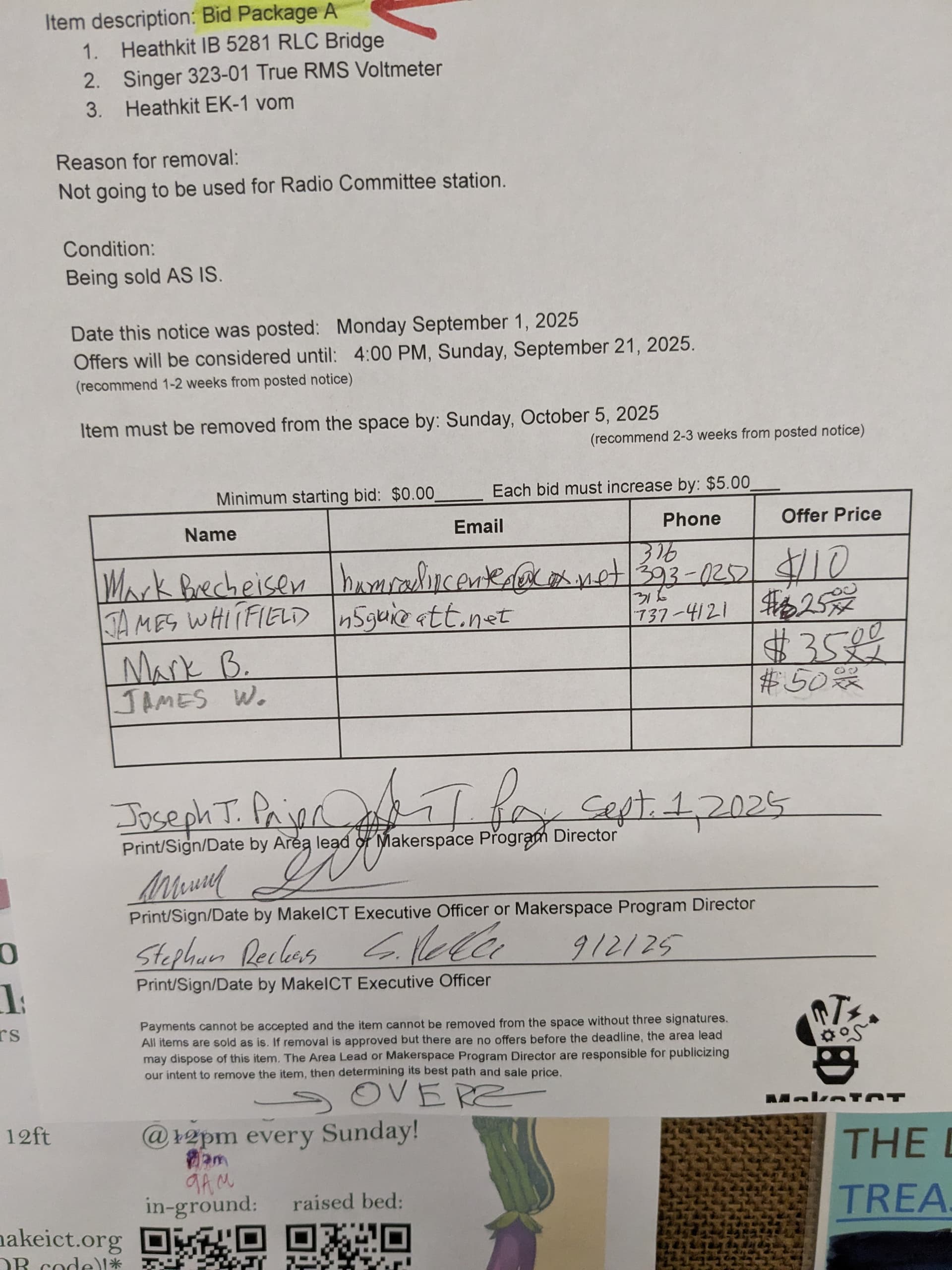 Item Must Be Removed From Space By: Sunday, October 5, 2025 Minimum Starting Bid: $0.00